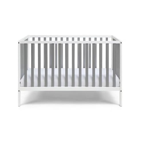 A chic two‑tone design crib with clean lines that converts into a daybed or toddler bed, offering both style and flexibility.